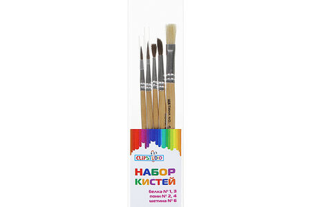 Набор кистей CLIPSTUDIO для детского творчества и поделок в школе, дома и на кружках. Подходят для работы с разными красками и нанесения клея: кисть белка и волос пони - для гуаши, акварели, темперы, кисть щетина - для акриловых и масляных красок, для нанесения клея. В наборе 5 кистей разного диаметра: ими рисуют мелкие детали и наносят широкие мазки. Набор не подойдет для профессионального рисования.