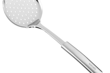 Шумовка SATOSHI Альфа сделана из качественной нержавеющей стали. Чаще всего применяют для снятия пены или же вылавливания мяса и других продуктов из основного блюда. Благодаря правильному хранению кухонный инструмент не теряет своих качеств долгое время.