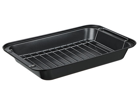 Готовьте аппетитные блюда-гриль прямо в вашей духовке! Глубокий противень с решеткой VETTA Ростер позволяет готовить максимально полезные блюда с красивыми полосками-гриль. Изделие из углеродистой стали имеет безопасное антипригарное покрытие и легко моется. Для приготовления диетических блюд уложите мясо и овощи на решетку и запекайте до готовности. Лишний жир останется под решеткой на дне противня. Противень Ростер – радость для каждой хозяйки!