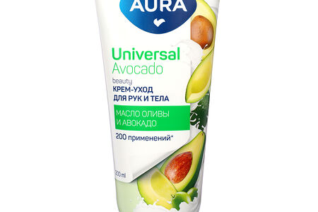 Крем-уход для рук и тела AURA универсальный в тубе 200 мл «Масло оливы и авокадо» сделает кожу нежной, ухоженной и бархатистой. Масло авокадо глубоко питает, восполняя недостаток липидов в коже и восстанавливает ее защитный барьер. Масло оливы омолаживает, повышает тонус и увлажняет, возвращает эластичность и предотвращает появление сухости. Не содержит минеральных масел, спирта, силиконов и парабенов.