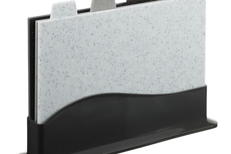 Набор разделочных досок на подставке набор 5 шт, 30х22 см является незаменимым атрибутом любой кухни. Подставка для разделочных досок выполнена из прочного, безопасного пластика, который помогает сохранять остроту ножей, материал не впитывает в себя запахи и масла. Поверхность досок оснащена желобками для того, чтобы сок от продуктов не стекал на поверхность стола, также каждая доска обладает уникальным рельефом для оптимизации нарезки соответствующего продукта, а на обратной стороне есть противоскользящие накладки.