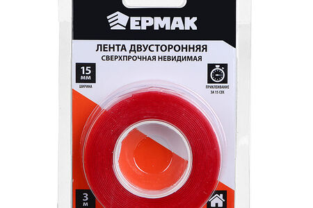 Лента двухсторонняя сверхпрочная ЕРМАК, 15 мм х 3 м доставка
