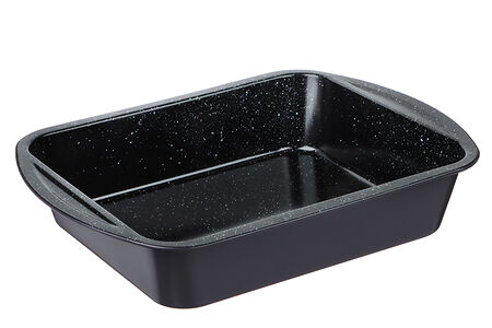 Противень глубокий для выпечки изготовлен из углеродистой стали, с 2-х слойным высокопрочным антипригарным покрытием, которое выдерживает температуру 280 градусов. Подходит для использования в духовых шкафах.