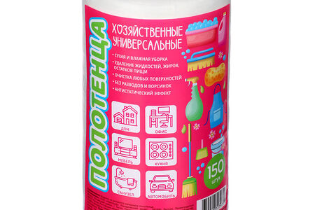 Универсальные хозяйственные полотенца для уборки отрывные в рулоне с перфорацией помогут быстро навести порядок в доме, в квартире, на даче, в офисе, в гараже и в автомобиле, а также будут незаменимы в поездках и походах. Подходят для сухой и влажной уборки, для удаления жиров, жидкостей и остатков пищи. Могут использоваться в качестве салфеток для рук. Идеальны для очистки любых поверхностей, так как не оставляют разводов и ворсинок. Обладают антистатическим эффектом. 150 штук в рулоне.