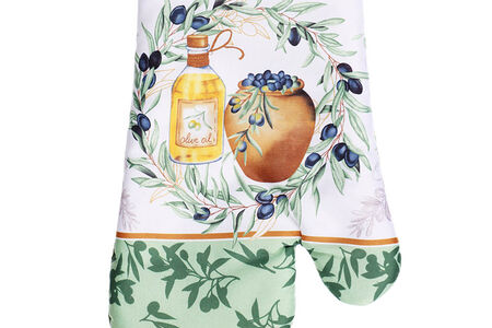 Всё продумано: есть даже и петелька, за которую вы сможете повесить свою помощницу неподалёку от плиты. В ожидании очередного задания эта рукавичка будет доставлять вам визуальное удовольствие своей нежной палитрой в бело-зеленой гамме. Соберите всю коллекцию!