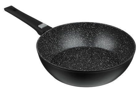 Высокопрочное внутреннее антипригарное покрытие под мрамор гарантирует успех вашим блюдам, тем более что использовать сковороду можно на всех видах плит и на индукционной плите в том числе.
