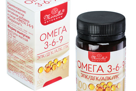 Омега 3-6-9 «Мирролла» – это биологическая добавка к пище для взрослых и детей, которая является дополнительным источником полиненасыщенных жирных кислот. Сбалансированный комплекс жирных кислот укрепляет иммунитет, помогает оптимизировать обменные процессы в организме, повышает устойчивость к стрессам, способствует улучшению памяти и концентрации внимания. 100 капсул в упаковке.
