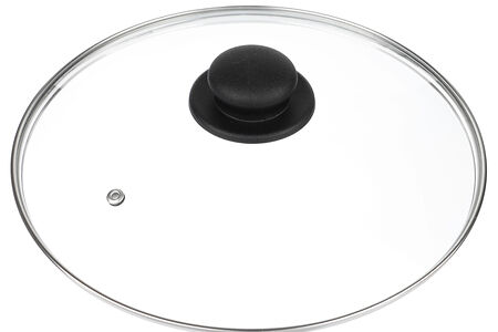 Жаропрочная крышка диаметром 28 см из термостойкого стекла с ободком из высококачественного металла и ненагревающейся ручкой подходит для кастрюль и сотейников. Металлический ободок препятствует образованию сколов, а ручка не скользит в руке и не нагревается во время приготовления. Прозрачная крышка позволяет полностью контролировать процесс приготовления без потери тепла.