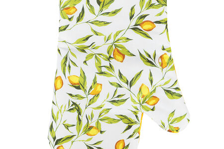 Прихватка-варежка PROVANCE Лимонный курд - незаменимый помощник на любой кухне. Изделие выполнено из прочного материала и оформлено красочным принтом. Прихватка мягкая, удобная и практичная. Она защитит ваши руки и предотвратит появление ожогов. Оригинальный дизайн позволит красиво дополнить интерьер кухни. С помощью текстильной петельки прихватку можно подвесить на крючок.