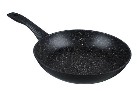 Сковорода TM Satoshi серия "Карбон" д.28 см выполнена из литого алюминия, что обеспечивает качественную равномерную прожарку продуктов. Рабочая поверхность сковороды защищена прочным антипригарным покрытыем под мрамор, а снаружи нанесено термостойкое покрытие черного цвета.
