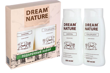 Набор подарочный Dream Nature с козьим молоком, Шампунь 250 мл + Гель для душа 250 мл доставка