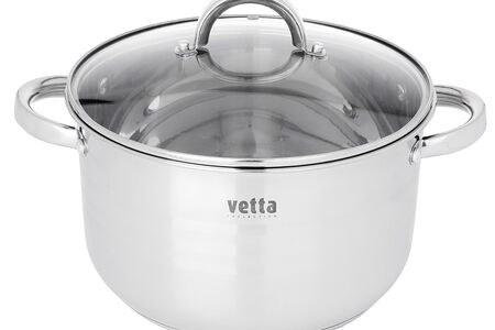 Все еще довольствуетесь приготовлением обедов в старых кастрюлях, где пища медленно варится и пригорает? Обратите внимание на линейку стильной посуды «Фултон». Это универсальная посуда из нержавеющей стали, созданная по последним технологиям. Кастрюли оснащены капсульным дном. Вода закипает быстрее. Ингредиенты не прилипают, не подгорают. Пища готовится равномерно и качественно. Подходит для длительного хранения в холодильнике и тушения блюд в духовке. 6 причин купить кастрюлю нержавеющей стали т.м.Vetta серия "Фултон": • многослойное капсульное дно — быстрее готовит, экономит энергию • крышка из жаропрочного стекла со стальным ободом и отверстием для отвода пара • можно ставить в холодильник • подходит для всех типов плит, включая индукционные • можно мыть в посудомоечных машинах. *объем кастрюли указан при наливании жидкости до краёв.