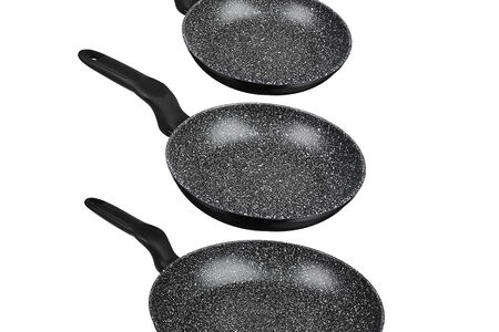 Набор литых сковород SATOSHI Стоун с антипригарным покрытием «мрамор» – это 3 алюминиевые сковороды разного диаметра, которые подойдут для приготовления любых блюд для всей семьи. Надежное покрытие гарантирует долгий срок службы и позволяет готовить пищу без масла. Ручки с напылением Soft Touch имеют антискользящий эффект и не нагреваются. Посуда произведена из экологичных материалов и не содержат PFOA. Подходит для индукционных плит.