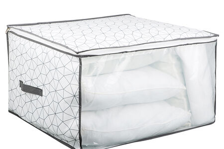 Кофр - это футляр для хранения одежды, постельных принадлежностей, пледов, полотенец и скатертей. Его можно купить, чтобы убрать сезонные вещи и освободить пространство. Чехол прямоугольной формы 60х50х35 см изготовлен из нетканого материала, который защищает вещи от насекомых, препятствует попаданию влаги, не пропускает пыль. Контейнер может использоваться автономно, а также в качестве дополнительной секции для хранения вещей в шкафу. Крышка оснащена застежкой-молнией. Кофр выполнен с прозрачным окном, которое позволяет видеть, что хранится внутри.