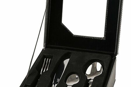 Набор столовых приборов GIPFEL MICHELLE 51237. В наборе 24 предмета на 6 персон. В состав набора входят 6 столовых ложек, 6 чайных ложек, 6 вилок и 6 столовых ножей. Предметы изготовлены из нержавеющей стали 18/10 и имеют зеркальную полировку. Упакованы в подарочную черную коробку. Размер упаковки 28х9х18,5 см. Вес 2116 гр.