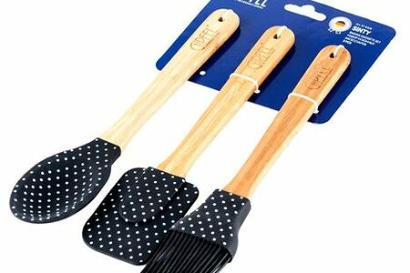 Набор кухонных аксессуаров GIPFEL SINTY из 3 предметов. В наборе: ложка 26,5см, лопатка 25,5см, кисточка 26см. Предметы сделаны из силикона и имеют бамбуковые ручки с отверстиями для подвешивания.