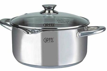 Кастрюля Gipfel 1249 прослужит вам не одно десятилетие, поскольку изготовлена из нержавеющей стали — материала, отличающегося повышенной прочностью. Особенность серии Coctail, к которой относится данная модель, — оригинальная форма сливного отверстия на крышке, формирующая уникальный дизайн посуды. Объем этой кастрюли — 4,5 литра, диаметр дна — 24 см. Внутри нанесена мерная шкала до 4,5 л. Данная кастрюля прекрасно моется в посудомоечной машине, а изысканные блюда в ней можно приготовить на всех типах плит, включая индукционные.