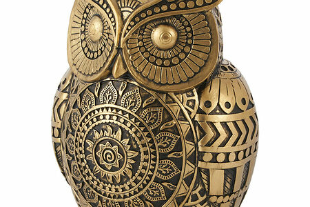 Gipfel Golden Owl 43072. Фигурка золотистой совы размером 11.5x11.5x16.5 см, изготовлена из полирезины. Выполнена в золотистом цвете с этническим цветочным орнаментом. Статуэтки из полирезины – новинки дизайнерского искусства. Этот современный полимерный материал создан из смеси каменной крошки, смолы с добавлением красящих пигментов. Он экологичен, не имеет запаха и не выделяет токсических веществ. Благодаря составу очень легкий и прочный, не трескается и не деформируется. Изделия из него будут привлекательными долгое время, не потеряют насыщенность цвета. Статуэтки можно размещать даже в ванной комнате и на кухне, так как полирезина не боится влаги и не горит, от солнечного цвета не тускнеет. Изделия на ощупь теплые и приятные, создадут уютную атмосферу в доме. Впишутся в любой интерьер. Статуэтка Golden Owl 43072 станет прекрасным и оригинальным подарком. Сувенир в виде золотой совы принесет в дом успех и процветание. Сова является символом мудрости и хорошей интуиции.Рекомендации по использованию и уходу:Вытирать пыль влажной салфеткой.Можно мыть губкой с мылом.