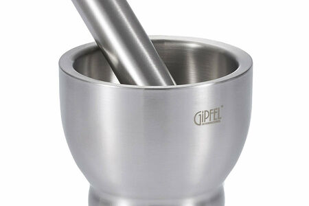 Ступка Gipfel 51740 12,5х11,5 см с пестиком 15 см из нержавеющей стали 18/10.Ступка для специй и пестик изготовлены из нержавеющей стали 18/10, которая известна своими свойствами: прочность, долговечность и стойкость к коррозии. Она легко моется, не впитывает загрязнений и запахов, и что немаловажно - никогда не разобьется.Ступка достаточно глубокая, с пластиковой крышкой, что не позволит ингредиентам высыпаться из емкости.Ступка удобная и стильная, станет незаменимым аксессуаром на вашей кухне.Ступка упакована в фирменную коробкуРекомендации по использованию и уходу:Не мыть жесткой металлической губкой.Можно мыть в посудомоечной машине.Вытирать после мытья.