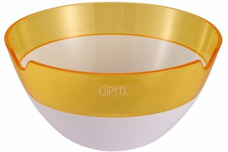 Миска-салатница серии Amadeus немецкого производителя Гипфел — образцовые решение для модной сервировки стола. Изделие, произведенное из прочного и износостойкого пластика, выполнено в двух цветах. Основание емкости — белое, а верхняя часть — прозрачно-желтая. Салатница с двойными стенками характеризуется повышенной устойчивостью. Для размещения ложек на верхнем ободке предусмотрены две выемки. Мыть салатницу можно вручную или в посудомоечной машине с другими предметами кухонного инвентаря.