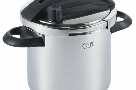 Скороварка Gipfel Factum 52139 объемом 5,5 л. Изготовлена из нержавеющей стали 18/10 - материала прочного, гигиеничного и долговечного. У изделия сверхпрочное трехслойное капсульное дно толщиной 6 мм. Толщина стенок 1 мм.Крышка из нержавеющей стали толщиной 1,2 мм и с уплотнительным кольцом. Если внутри возникает избыточное давление, уплотнительное кольцо выдавливается наружу через окно безопасности, и пар выходит.Бакелитовые ручки с удобным захватом не нагреваются.Преимущество скороварки в том, что она закрывается герметично и в ней при нагревании создаётся повышенное давление. Температура пара достигает 120°, благодаря чему сочное мясо, суп, овощи и многое другое можно приготовить в 2, а то и 3 раза быстрее. Приготовление на пару позволят продуктам сохранить цвет и все полезные вещества.Скороварка оснащена клапаном управления давлением, который автоматически поддерживает давление и температуру на требуемом уровне.Упакована в фирменную коробку. Внутри инструкция по эксплуатации и уходу.