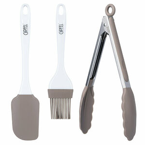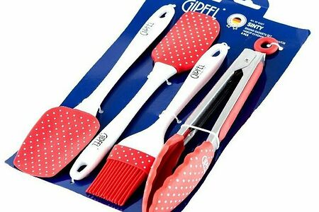 6327 GIPFEL Набор кухонных аксессуаров SINTY из 4 пр. (щипцы 23см, кисточка 22см, лопатка узкая 25см, лопатка широкая 25,5см). Материал: силикон, нерж. сталь, пластик.