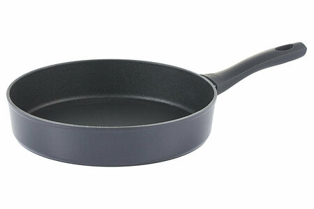 Алюминиевая сковорода Gipfel Diamant 52024 28х6 см. Изготовлена из кованого алюминия, из которого получаются прочные и легкие сковороды с тонкими стенками и толстым дном. Двухслойное антипригарное покрытие Pfluon Premium облегчает приготовление любых продуктов (мяса, рыбы, яиц, овощей), легко выдерживает интенсивную эксплуатацию. Благодаря устойчивости к царапинам, покрытие допускает использование металлических аксессуаров. Для заботящихся о здоровье неоспоримым достоинством будет экологичность данного покрытия, так как оно не содержит перфтороктановой кислоты. Сковорода выполнена в лаконичном дизайне черного цвета и бакелитовой ручкой с покрытием Soft Touch (удобно держать и не скользит в руке). Толщина дна: 4,0 мм, толщина стенок: 2,5 мм. Сковорода диаметром 28 см идеально подходит для приготовления гарниров и вторых блюд (мяса, рыбы, овощей), ее быстро и удобно мыть. Рекомендации по использованию и уходу:Не использовать металлические лопатки.Не мыть жесткой металлической губкой и чистящими порошками.Не разрезать приготовленную пищу в посуде.Не подвергать термошоку.Не рекомендуется мыть в посудомоечной машине.Не жарить еду без масла.Можно использовать на всех типах плит.