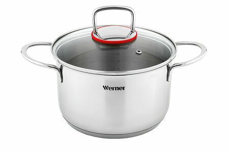 Коллекция из высококлассной нержавеющей стали 18/0 Werner Como отличается современным минималистичным строгим дизайном вкупе с мягкими сглаженными формами. С внешней стороны посуда имеет прекрасно отполированную зеркальную поверхность.Кастрюля с крышкой объемом 3л: диаметр 20 см; высота 11,5см.Кастрюля имеет многослойное капсульное дно, что способствует равномерному распределению тепла и сохранению температуры блюда уже после процесса готовки, что позволяет ему настояться и приобрести более насыщенный вкус.Ручки прочно приварены. Внутри кастрюли для удобства имеется мерная шкала.Закругленные ручки широко расставлены, поэтому не нагреваются при готовке. Кроме того, можно захватить их всей ладонью, не боясь обжечься о горячие стенки кастрюли. Под ручкой стеклянной крышки имеется диск из нержавеющей стали, нагревающийся гораздо меньше стекла и предотвращающий соприкосновение руки с поверхностью крышки. Диск имеет красную силиконовую герметичную окантовку в цвет фирменного логотипа Werner. На крышке есть отверстие для выхода пара.Посуда из нержавеющей стали долговечна и пригодна для мытья в ПММ.В кастрюле имеется индукционное дно, что позволяет использовать ее на всех видах плит.