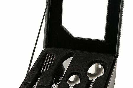Набор столовых приборов GIPFEL MASSIMO 51235. В наборе 24 предмета на 6 персон. В состав набора входят 6 столовых ложек, 6 чайных ложек, 6 вилок и 6 столовых ножей. Предметы изготовлены из нержавеющей стали 18/10 и имеют зеркальную полировку. По краю ручек приборов нанесен рельефный рисунок. Упакованы в подарочную черную коробку. Размер упаковки 28х9х18,5 см. Вес 2443 гр.