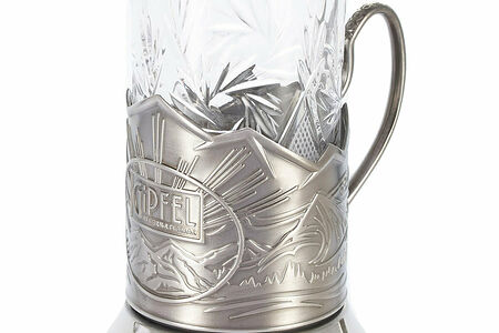Мельхиоровый подстаканник для чая – роскошный символ Советской эпохи. Изготовлен на легендарном заводе с вековой историей «Кольчугинский мельхиор» по заказу Gipfel.Подстаканник из латуни, имеет декоративно-защитное гальваническое покрытие никелем.Подстаканник с эксклюзивным дизайном, украшен горным пейзажем с лучами восходящего солнца и логотипом Gipfel.Подстаканник-подставка плотно удерживает хрустальный стакан, с ручкой для того, чтобы не обжечь руки во время чаепития.В набор с подстаканником входит хрустальный стакан объемом 250 мл, размером 11х7 см. Стакан идеально подходит по размеру к подстаканнику. Строгая форма и оригинальная огранка придаст чаепитию настроение в лучших советских традициях.Подстаканник-это кружка для чая и кофе, которая будет выгодно смотреться на кухне и на праздничном столе, как неотъемлемый элемент сервировки стола.Стакан с подстаканником в фирменной упаковке – ценный и солидный подарок.