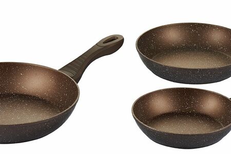 50309 WERNER Набор из 3 сковород FIRENZE 20х4,5см, 24х5,0см, 28х5,4см с индукционным дном, с двуслойным мраморным антипригарным покрытием Pfluon Marble. Материал: кованый алюминий. Толщина: 2,5мм