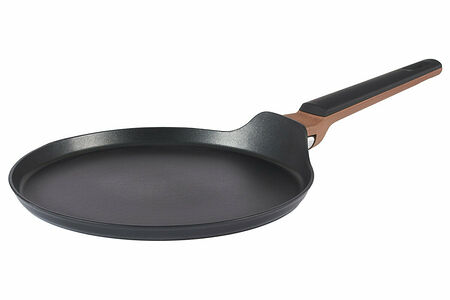 Сковорода блинная Werner Vertical 51918 26x1,7 см. Изготовлена из кованого алюминия, из которого получаются прочные и легкие сковороды с тонкими стенками и толстым дном.Двухслойное антипригарное покрытие Pfluon облегчает приготовление любых продуктов, легко выдерживает интенсивную эксплуатацию, однако требует бережного обращения. Металлические ложки и лопатки поцарапают поверхность, поэтому для помешивания рекомендуем использовать деревянные или силиконовые лопатки.Сковорода выполнена в лаконичном дизайне: основание черного цвета и бакелитовой ручкой в коричневом цвете с отделкой под дерево и покрытием Soft Touch (удобно держать и не скользит в руке). Толщина дна: 3,3 мм, толщина стенок: 2,8 мм.Сковорода диаметром 26 см идеально подходит для выпекания ровных и тонких блинчиков, ее быстро и удобно мыть.Рекомендации по использованию и уходу:Не использовать металлические лопатки.Не мыть жесткой металлической губкой и чистящими порошками.Не разрезать приготовленную пищу в посуде.Не подвергать термошоку.Не рекомендуется мыть в посудомоечной машине.Не жарить еду без масла.Можно использовать на всех типах плит.