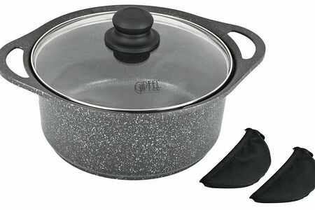 Как и все остальные модели серии ZENIT, данная посуда изготовлена из литого алюминия, что гарантирует прочность ее корпуса, покрытого с внутренней стороны мраморным антипригарным покрытием, которое практически исключает пригорание пищи при готовке. Данная кастрюля оснащена съемными ручками, ее объем составляет 3,4 литра.