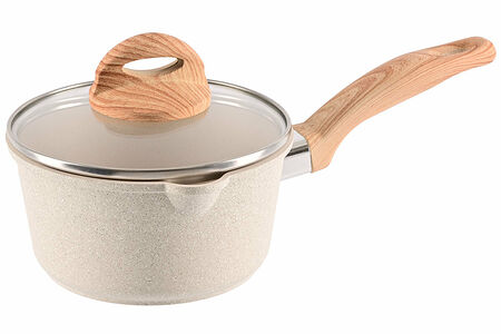 Ковш Werner Letizia 52398 16,0х8,3 см. Объем ковша 1,3 л. Сделан из литого алюминия с прочным антипригарным мраморным покрытием GMM DURASLATE. Ковш оснащен удобным носиком для слива жидкости. В комплекте стеклянная крышка. Ручка сделана из бакелита. Толщина дна 5 мм, толщина стенок 2,5 мм. Диаметр дна 13 см. Вес 0,5 кг.Этот алюминиевый ковш с толстым дном приятно удивит вас своей практичностью. Модель представляет собой идеальный баланс легкости и прочности, поэтому его с легкостью переставит одной рукой даже хрупкая девушка. Причем сделает это с максимальным комфортом, потому что бакелитовая ручка приятна на ощупь и не нагревается при готовке.Модель оснащена мраморным покрытием GMM DURASLATE, отличающимся высокими антипригарными свойствами и продолжительным сроком службы – минимум два года. К слову, этот кухонный ковш с носиком, благодаря последнему, обеспечивается удобный слив жидкости. Ковш выполнен в приятном бежевом цвете, впишется в любой интерьер кухни.Благодаря покрытию посуду можно использовать для каши, а также для тушения, жарки и пассировки. Но и для обычной варки яиц или сосисок, а также для разогрева супа он подойдет идеально – алюминиевый корпус отличается высокой теплопроводностью, и вода в нем закипает мгновенно.В серии Letizia вы также найдете кастрюли и сковороды различного назначения.Ковш можно использовать на газовых, стеклокерамических, электрических плитах, кроме индукционных. Допускается мытье в посудомоечной машине в режиме ECO при 50°С.*Сковорода не подходит для индукции.