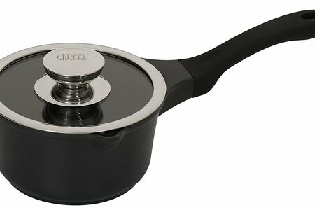0143 GIPFEL Ковш RICHMOND 16х8,5см/1,5л из литого алюминия, со стеклянной крышкой, с индукционным дном, с двуслойным антипригарным покрытием Whitford Xylan plus, с бакелитовой ручкой с покрытием Soft-touch . Толщина: 1,8/4,0мм. Цвет: черный