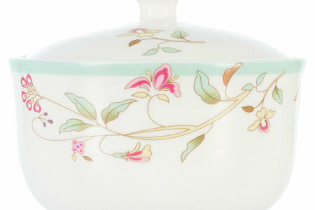 Сахарница Gipfel Verde 40730. Объем 260 мл. Сахарница из костяного фарфора Gipfel Verde – элегантная и практичная, добавит шарм и изысканность Вашему столу. Изготовленная из высококачественного костяного фарфора, она станет великолепным предметом сервировки, и позволит Вам насладиться не только вкусом еды, но и красотой посуды, из которой Вы едите. Фарфор является нетоксичным и не вступает в реакцию с пищей, что обеспечивает полную сохранность вкуса и качества продуктов, которые Вы добавляете в сахарницу. Фарфоровая посуда – это, прежде всего, эстетическое наслаждение. Ее гладкая поверхность и стильный дизайн создают великолепное визуальное впечатление. Каждая деталь фарфоровой сахарницы коллекции Gipfel Verde тщательно продумана, чтобы подчеркнуть изысканность сервировки. Предметы сервировки Gipfel Verde представлены в стильном дизайне: декорированы нежным цветочным орнаментом с фуксиями, символом любви и доверия. Сахарница Gipfel Verde сочетается с другими предметами посуды из коллекции. Позвольте себе насладиться не только вкусом и ароматом ваших любимых напитков и десертов, но и красотой посуды, которая сервируется на стол. Погрузитесь в мир изысканности и утонченности с фарфоровой посудой коллекции Gipfel Verde и создайте неповторимую атмосферу на Вашем столе. Сахарница Gipfel Verde 40730 упакована в фирменную коробку.
