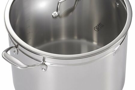 Кастрюля из нержавеющей стали Gipfel Grande 51704. Объем кастрюли 20 л. Диаметр 32 см. Высота 25 см. Вес 3890 гр. Кастрюля сделана из нержавеющей стали 18/10 и имеет зеркальную полировку. На внутренней стенке нанесена мерная шкала. В комплекте стальная крышка. Кастрюля подходит для любых плит, включая индукционные. Пятислойное теплоаккумулирующее дно обеспечивает быстрый нагрев и длительное сохранение тепла. Кастрюлю можно мыть в посудомоечной машине. Упакована в фирменную коробку Gipfel. Серия кастрюль GRANDE, как можно понять из названия, отличается большим литражом – сюда входят модели объемом от 11 до 20 литров. Все они изготовлены из нержавеющей стали марки 18/10, оборудованы стеклянной крышкой и подходят для готовки на индукционных плитах.