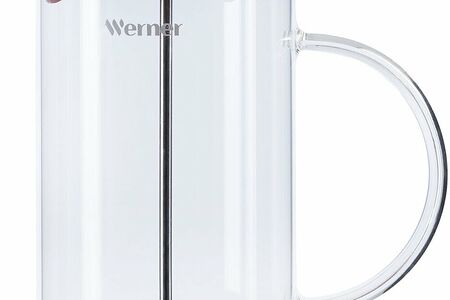 Френч-пресс Werner Allegro 51459 объемом 600 мл. Френч -пресс прекрасно подойдет для заваривая как кофе, так и чая. Корпус изготовлен из боросиликатного стекла, фильтр из нержавеющей стали 18/10. Фильтр с пружиной не только предотвращает попадание чаинок в напиток, но и позволит взбить в пену молоко. Ручка удобна даже для большой ладони. Рекомендуется промывать фильтр после каждого применения, для этого открутите его от поршня и разберите. Если вы завариваете кофе, то используйте только грубый помол, так как мелкий помол может засорить фильтр. Френч-пресс при сервировке сочетается с другими товарами серии Allegro. Упакован в стильную подарочную коробку.