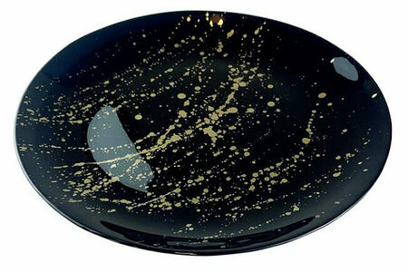 Тарелка сервировочная Gipfel Splash 43199 32 см. Изготовлена из стекла.Посуда из стекла практичная, не впитывает запахи и влагу, легко отмывается от загрязнений. Стеклянная посуда ручной работы украшает интерьер и придает ему особую легкость и изящество. Каждое изделие, сделанное вручную, обладает неповторимостью и уникальностью.Тарелка выполнена в элегантном черном цвете с золотистой россыпью.Это декоративный элемент для изысканной сервировки стола.Сервировочную тарелку используют как красивую подставку под другую посуду: под салатные тарелки, креманки, для использованных приборов и т.д.Тарелки серии Splash представлены в разных размерах, из них вы можете собрать целый набор в едином стиле.Рекомендации по использованию и уходу:Рекомендуется избегать резкого нагрева материала и его чрезмерного охлаждения, так как стекло очень чувствительно к перепадам температуры.Беречь от ударов и падений.Не рекомендуется мыть в посудомоечной машине.Не рекомендуется использовать в микроволновой печи.Не использовать абразивные средства или металлические мочалки.Для мытья использовать жидкие моющие средства и мягкую губку.