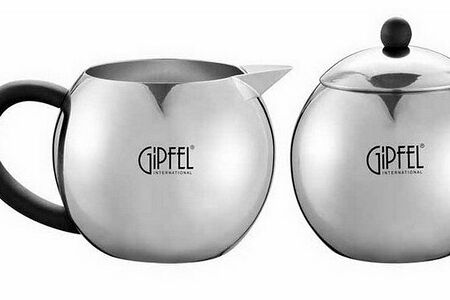 9833 GIPFEL Набор OREOLE: Сахарница с ложечкой, молочник 9,3х7см,14 см, 370 мл (нерж. сталь)