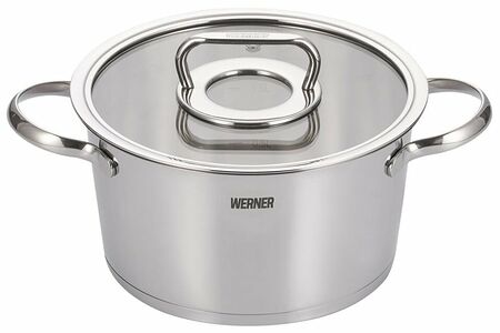 Коллекция из высококлассной нержавеющей стали 18/10 Werner NICE отличается зеркальной поверхностью, трапециевидной формой, расширяющейся к верхнему краю, изящными ручками и стильным переплетением стекла и металла в дизайне.У кастрюли довольно широко расставленные ручки, дающие достаточное пространство для плотного захвата, что делает их и удобными, и оберегающими от ожогов о горячий корпус посуды.С внутренней стороны кастрюли нанесена мерная шкала.Ручка крышки имеет плоский верх, за который очень удобно держаться, и прочно крепится к стальному диску, что исключает ее расшатывание со временем.Кастрюля имеет многослойное капсульное дно, что способствует равномерному распределению тепла при варке, тушении, томлении и сохранению температуры блюда даже после процесса готовки, что позволяет ему настояться и приобрести более насыщенный вкус.Сталь 18/10 - это залог качества, безопасности, неприхотливости и долгой жизни Вашей посуды. Сталь содержит 18% хрома, который наделяет сплав антикоррозийными свойствами, и 10% никеля, обеспечивающего ударопрочность, износостойкость и защиту от микробов.В кастрюле имеется индукционное дно, что позволяет использовать ее на всех видах плит.Объем кастрюли 3,1л.