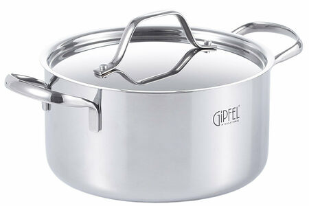 Кастрюля из нержавеющей стали Gipfel Galaxy 51969. Объем данной модели 3,2 л, диаметр 20 см, высота стенок 10,5 см.Толщина – 2,3 мм (нержавеющая сталь 18/10 (0,5 мм) + алюминий (1,3 мм) + нержавеющая сталь 18/0 (0,5 мм)). Между слоями нержавеющей стали, которая с одной стороны соприкасается с поверхностью плиты, а с другой стороны контактирует с едой, заключен слой алюминия. Алюминий запаян внутрь стальной оболочки.Кастрюля изготовлена из нержавеющей стали «18/10», что гарантирует ее прочность и долговечность, а также гигиеничность посуды — отсутствие пор в данном материале исключает концентрацию вредных веществ. Эта кастрюля отлично подойдет для хранения еды после приготовления - вкус и полезные свойства пищи нисколько не пострадают.У Кастрюли индукционное капсульное дно: при приготовлении пища нагревается равномерно и не подгорает, стенки кастрюли не ломаются и не деформируются при использовании на различных видах плит.Дизайн посуды разработан с учетом максимума удобства при применении: глянцевая поверхность, плавные линии и ручки с удобным захватом. Цельная стальная ручка является наиболее надёжной и долговечной. Она полая внутри, благодаря чему она не нагревается. Ручка крепится к корпусу методом точечной сварки.Внутри кастрюли нанесена мерная шкала, с помощью которой удобно отмерить нужное количество воды и следить за ее уровнем.Данная модель со стальной крышкой толщиной 0,7 мм без отверстий для пара, с клёпочным креплением ручки. Она легко впишется в современный кухонный дизайн. Кастрюля упакована в коробку.Рекомендации по использованию и уходу:Не перегревать пустую или почти пустую кастрюлю.Не мыть жесткой металлической губкой.Можно мыть в посудомоечной машине.Вытирать после мытья.Можно использовать на всех типах плит.