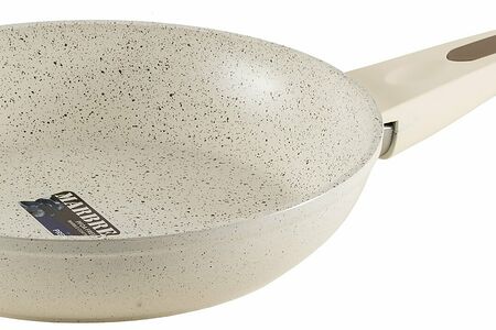 Алюминиевая сковорода Gipfel Sonrizo 0429 диаметром 26 см. Высота 5 см, длина с ручкой 45 см. Толщина дна – 4 мм, а стенок – 2 мм.Сковорода изготовлена из кованного алюминия, что делает ее легкой и при этом достаточно прочной.Антипригарное керамическое покрытие Excilon абсолютно безвредное для здоровья, при нагревании не выделяет вредных веществ. В составе не содержит PTFE (политетрафторэтилен) и PFOA (перфтороктановой кислоты). Качество изделия подтверждено международными сертификатами.Сковорода выполнена в деликатном дизайне, имеет нежную бежевую расцветку и декорирована под мрамор. Наружный декор, имитирующий мраморные вкрапления, повторяет свой рисунок и на керамическом антипригарном покрытии внутри посуды, поддерживая гармоничное целостное восприятие. При этом керамическое покрытие не приобретает свойства мраморного.Эргономичная ручка из бакелита также в светлых тонах с коричневой вставкой и покрытием Soft Touch (не скользит и удобно лежит в руке).Сковорода диаметром 26 см идеальна для жарки и тушения при минимальном использовании масла.Сковорода в фирменной упаковке.Рекомендации по использованию и уходу:Не использовать металлические лопатки.Не мыть жесткой металлической губкой и чистящими порошками.Не разрезать приготовленную пищу в посуде.Не подвергать термошоку.Не жарить еду без масла.Можно использовать на всех типах плит.