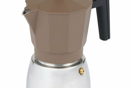 Гейзерная кофеварка Werner Dono 51391. Это компактная и симпатичная кофеварка для любителей крепкого и ароматного кофе по-неаполитански. Ширина с ручкой 17,5 см, высота 20 см. Изготовлена из безопасных и нетоксичных материалов. Нижний резервуар и воронка фильтр из нержавеющей стали. Верхний резервуар матового коричневого цвета с гранями, изготовлен из алюминия. Внутри нанесена зеркальная полировка, чтобы предмет после использования легко было почистить. Ручка на крышке и ручка кофеварки черного цвета из нейлона с покрытием Soft-touch, которые не нагреваются и удобны для руки, поверхность у них мягкая и не скользит. Гейзерная кофеварка приготовит за раз 300 мл или 6 чашек по 50 мл бодрящего напитка. Подходит для всех видов плит. При этом вам не нужно следить за процессом, кофе из кофеварки никуда не убежит. Кофеварка упакована в фирменную коробку, инструкция по использованию - внутри.