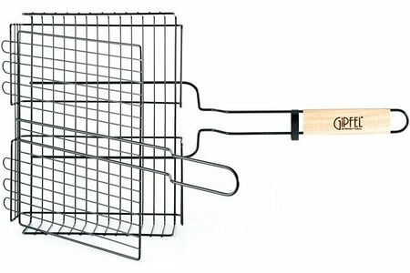 Двойная металлическая решетка-гриль Gipfel 5940. Решетка большого размера 31х24х6 см. Длина с ручкой - 58 см., благодаря чему на ней можно комфортно разложить овощи, мясо или рыбу. Прутья с антипригарным покрытием Teflon уберегут продукты от пригорания. Деревянная ручка не будет нагреваться во время приготовления блюд на костре. Наружная поверхность ручки с логотипом бренда. В процессе готовки решетку можно легко переворачивать — двойная конструкция, размер ячеек и блокировочное кольцо защитят продукты от падения на мангал. Модель, выполненная из нержавеющей стали, не вызовет проблем в эксплуатации. Сталь не окисляется, не деформируется, не требует сложного ухода, а благодаря антипригарному покрытию сохраняет эстетичный вид готовой пищи. Легко очистить прутья от жира можно с помощью губки для мытья посуды и стандартного моющего средства.