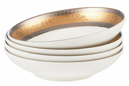 Набор розеток Gipfel Hermes 41475. В наборе 4 розетки. Объем одной розетки 50 мл, размер 10,5x2,5 см, вес 76 гр.Розетки изготовлены из костяного фарфора, легкого и экологически чистого материала. Фарфор безопасен для здоровья, не содержит вредных веществ или токсинов. Вы можете быть уверены в сохранности качества и вкуса блюд, которые подаете в этих розетках.Костяной фарфор, из которого изготовлена вся посуда коллекции Gipfel Hermes, отличается от обычного фарфора повышенной прочностью и белизной.Розетки Gihfel Hermes декорированы золотым кантом с изящным растительным орнаментом и меандром в темном серебре.Изысканные розетки из фарфора - символ роскоши и уважения к гостям. Сервировка стола посудой Gipfel Hermes придаст вашим приемам особый шарм. Веками знатные персоны и королевские дворы предпочитали обедать и ужинать именно из фарфора.Розетки из фарфора коллекции Gipfel Hermes отлично подойдут для подачи соусов к основным блюдам, а также для меда и варенья.При сервировке розетки сочетаются с другой посудой коллекции Gipfel Hermes. Соберите свой сервиз из костяного фарфора коллекции Gipfel Hermes.Набор розеток Gipfel Hermes 41475 упакован в фирменную коробку.Рекомендации по использованию и уходу:Беречь от ударов и падений.Не подвергать перепадам температуры.Не нагревать в микроволновой печи, на конфорках плиты или открытом пламени.Не использовать абразивные средства или металлические мочалкиНе мыть в посудомоечной машине.Для мытья использовать жидкие моющие средства и мягкую губку.