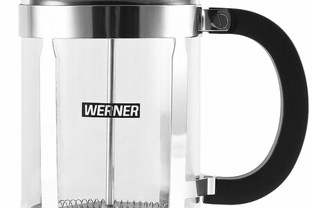 Френч-пресс Werner Vescona 50104 800 мл. Френч-пресс имеет элегантную оправу из нержавеющей стали. Оправа защищает колбу от ударов и не дает вам обжечься о горячую поверхность. Для приготовления напитка насыпьте в колбу молотый кофе, залейте горячей водой, опустите пресс-фильтр и оставьте настаиваться. Молотый кофе пресс-фильтр плотно прижмет к дну кофейника, а уплотнительное кольцо не даст ему попасть в напиток. Пресс-фильтр изготовлен из прочной нержавеющей стали и прослужит долго даже при многократном использовании. Колба френч-пресса сделана из жаропрочного боросиликатного стекла. Такая колба не лопнет, если в нее налить кипяток или поставить на холодную поверхность; она устойчива к царапинам и не мутнеет со временем. Благодаря разборной конструкции, ухаживать за френч-прессом легко и удобно. Также френч-пресс можно использовать как чайник для заваривания чая.