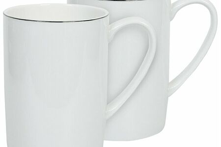 Набор кружек GIPFEL PLATINUM 51538. В наборе 2 кружки объемом 450 мл. Кружки изготовлены из костяного фарфора с ободком серебристого цвета по краю. При сервировке сочетаются с другой посудой коллекции PLATINUM. Размер упаковки 19х8,5х12 см; вес упаковки 640 гр