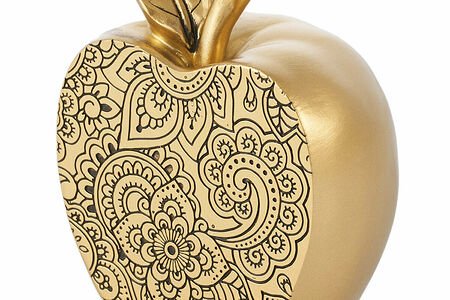 Статуэтка Gipfel Golden Apple 43070. Фигурка золотистого яблока размером 10x7x11.7 см, изготовлена из полирезины. Выполнена в золотистом цвете с этническим цветочным орнаментом. Статуэтки из полирезины – новинки дизайнерского искусства. Этот современный полимерный материал создан из смеси каменной крошки, смолы с добавлением красящих пигментов. Он экологичен, не имеет запаха и не выделяет токсических веществ. Благодаря составу очень легкий и прочный, не трескается и не деформируется. Изделия из него будут привлекательными долгое время, не потеряют насыщенность цвета. Статуэтки можно размещать даже в ванной комнате и на кухне, так как полирезина не боится влаги и не горит, от солнечного цвета не тускнеет. Изделия на ощупь теплые и приятные, создадут уютную атмосферу в доме. Впишутся в любой интерьер. Статуэтка Golden Apple 43070 станет прекрасным и оригинальным подарком.Рекомендации по использованию и уходу:Вытирать пыль влажной салфеткой.Можно мыть губкой с мылом.