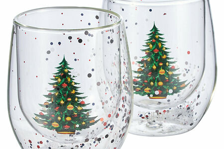 Набор стаканов Gipfel Christmas Star 52498 из 2 предметов объемом 300 мл. Оригинальные двухслойные стаканы с новогодним дизайном изготовлены из жаропрочного и устойчивого к конденсации боросиликатного стекла. Материал более прочный и совершенный, чем обычное стекло, с идеально гладкой поверхностью. Благодаря двойным стенкам изделие не греется и не обжигает руки, а также значительно дольше сохраняет температуру напитка. Декоративное наполнение между стенками в виде разноцветных сверкающих шариков и нарядная украшенная елочка по центру создадут праздничное настроение и добавят яркий акцент сервировке. Напитки в таких стаканах выглядят сказочно прекрасными. Набор упакован в подарочную коробку. Не рекомендуется мыть в посудомоечной машине и использовать в микроволновой печи.